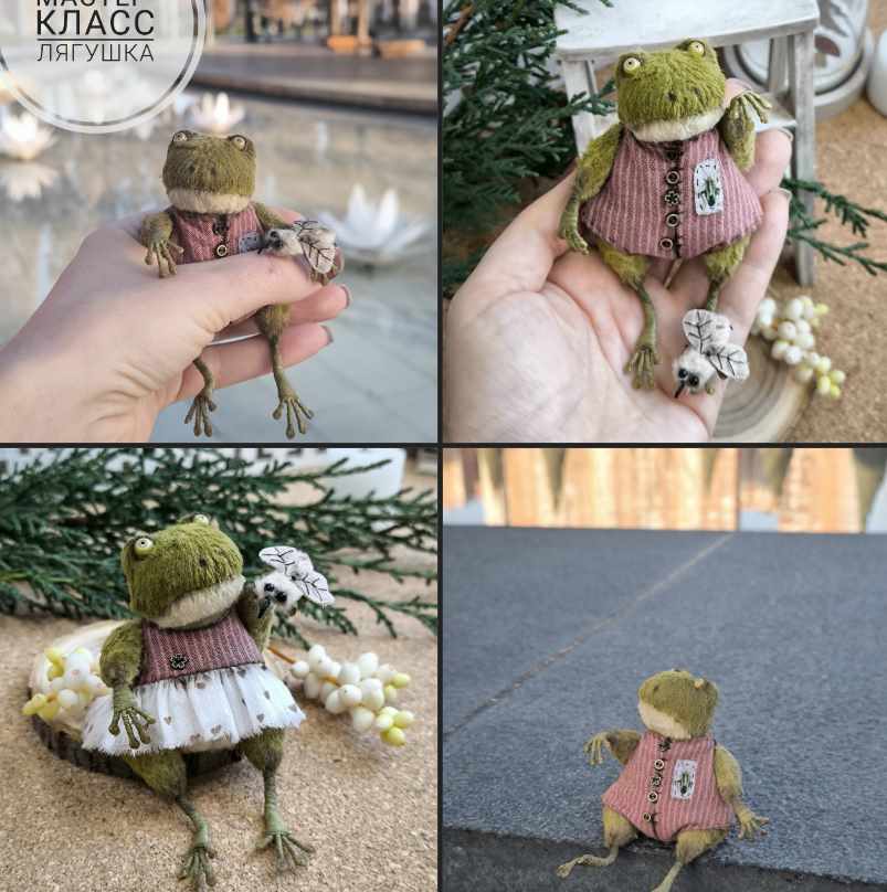 В этот МК входит 23 подробных видео-урока по созданию лягушки (размер игрушки от головы до кончиков пальцев 13см. Подвижные голова и лапы на шплинтах), её друга Комара и, конечно же, комплекта одежды.